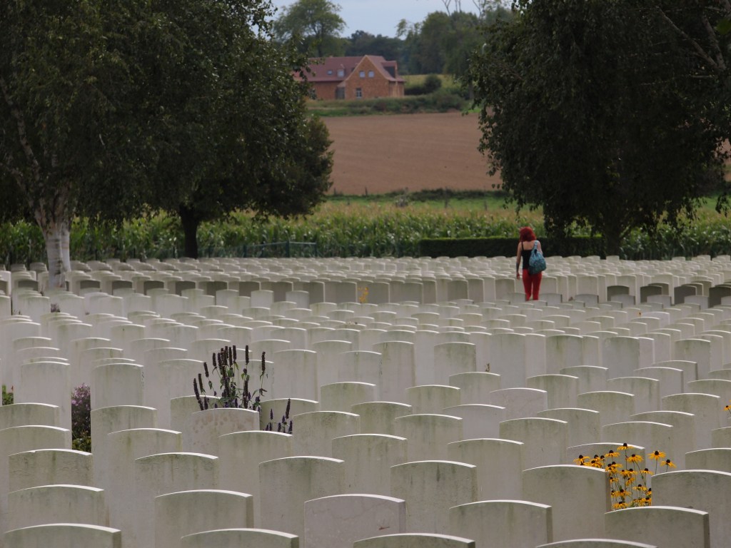 Author and poet Rudyard Kipling, whose only son John died in the war, referred to the CWGC cemeteries as the ‘Silent Cities’, a phrase that has always resonated deeply with me. Whenever I wander the rows of headstones in the cemeteries that adorn the map of the Old Front Line like jewels of shining Portland stone, I feel as if I’m walking streets lined not by graves, but by men and women who occupy the spaces carved for them from the battlefields in perpetuity. Each headstone, though a marker and memorialisation in death, somehow provides life and a dozen stories through the words engraved upon it.